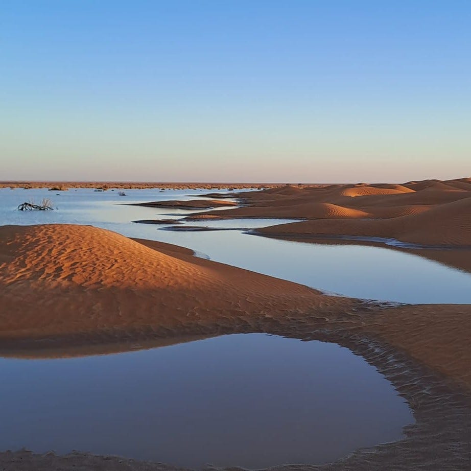 Elsewhere amid Tunisia’s Saharan ocean, bodies of water overtake the dunes and invite us for a dive of another nature.. This is not a mirage! Captured after a rainfall by Houcine Lazhar
