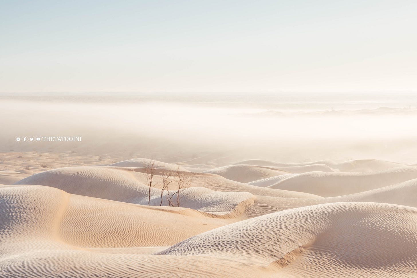 .. After we crossed the fairytale village, we blended into those golden, silvery dunes of a frosted desert. Ethereal Sahara portrayed by its explorer Walid Jabeur, “The Tatooini” son of Tunisia