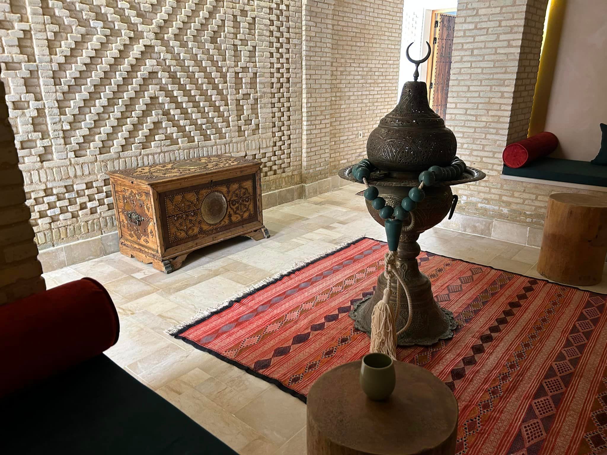 Again, we take an enchanting glimpse into Tunisia’s Nefta indoors.. Walls, rugs, and more rival in delicacy and merge in harmony, painted through the lens of city’s son, Hassen Zargouni