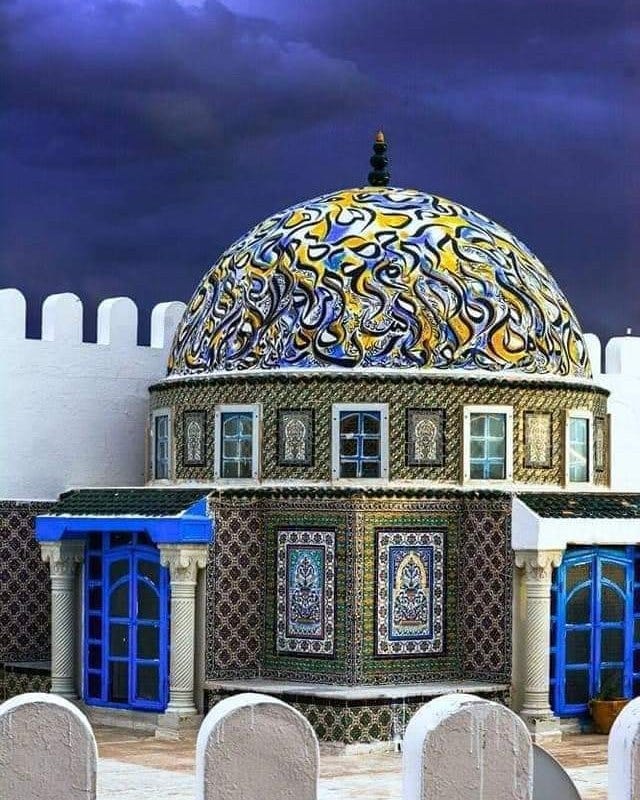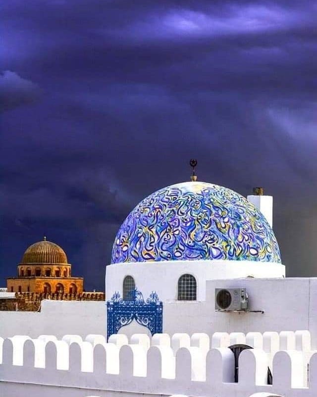 We’ve seen beautifully austere domes, and then this incredibly rich one.. bringing together fine, ancestral know-how left by ceramic artisans and the passionate strokes of the youth in modern-day Tunisia, here in Kairouan through the lens of Seif Cherif