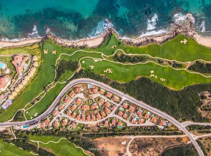 From Tunisia’s northernmost city to far west Tabarka, we savor another bracing, unique cocktail: Golf fields bordering and rivaling an inviting beach, portrayed by the drone of Marwen Faidi