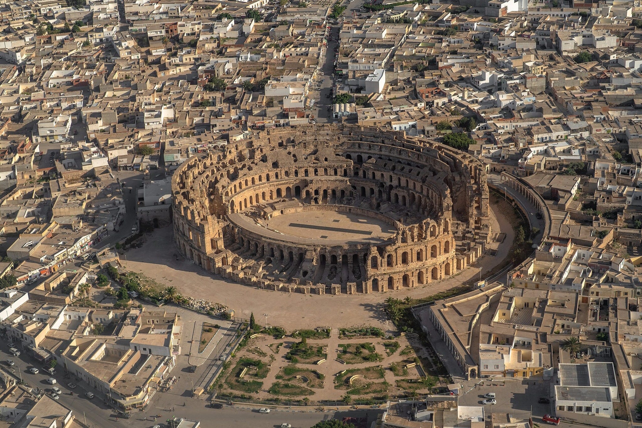 Flying east.. Diving deeper into the past.. Coming across another round gem: Thysdrus Amphitheater, the rocky, lively rival of the Roman Colosseum, home to classical music and ancient shows in Tunisia’s modern-day El Jem, cherished and captured by Skander Zarrad