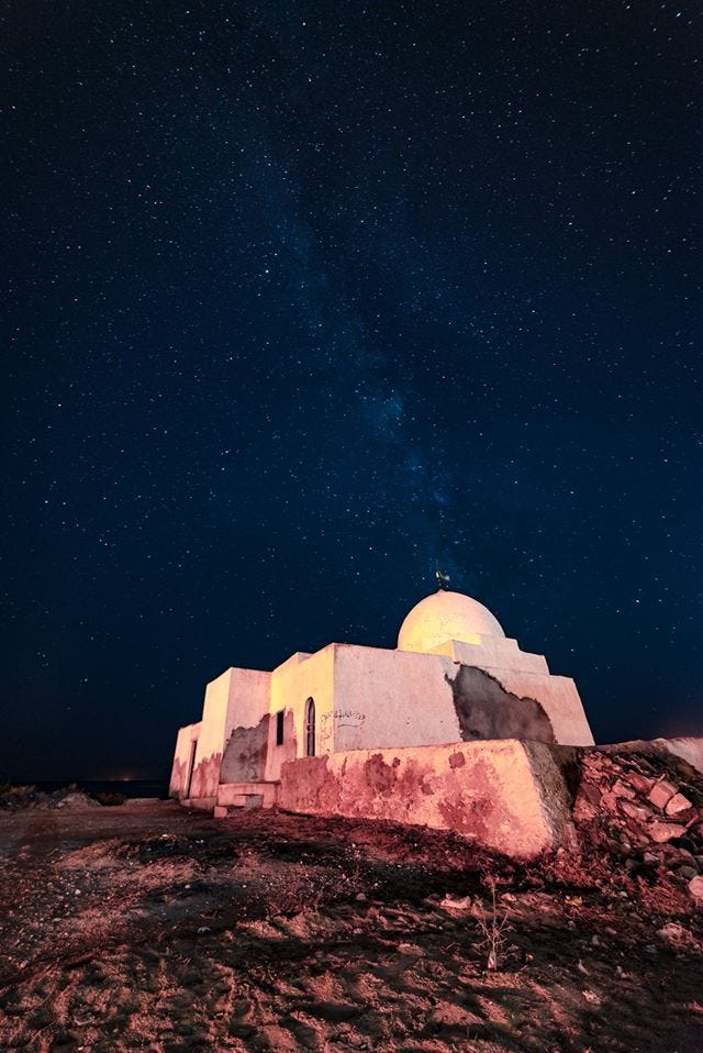Still another artwork of darkness, pureness, and shine, highlighted by a timeless shrine, contemplated by Hamideddine Bouali in Tunisia’s authentic Kerkennah islands