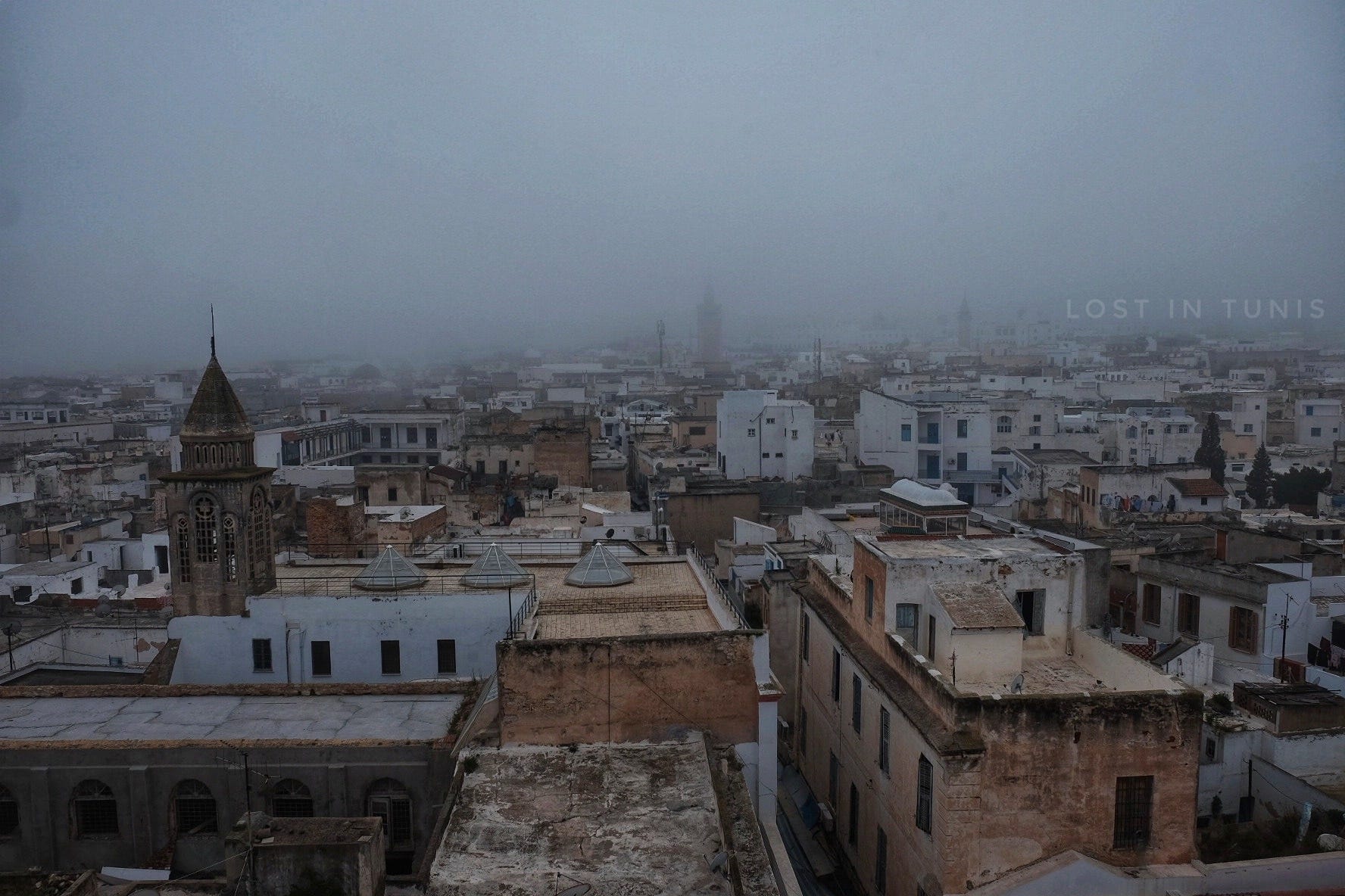 ... Next, we jump to the millennial city Tunis, guarded by that mountain, and wrapped in fog.. adding to its intimate, cushy nature, portrayed from above its old roofs by Tunisia’s urban explorer Mourad Ben Cheikh Ahmed