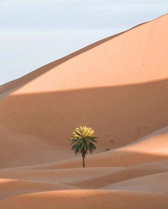 This palm, however, stands firm and braves the towering dunes of the Sahara desert - Serene yet loud photograph captured by Tawfik Abdelmoula on the outskirts of Tunisia’s Douz