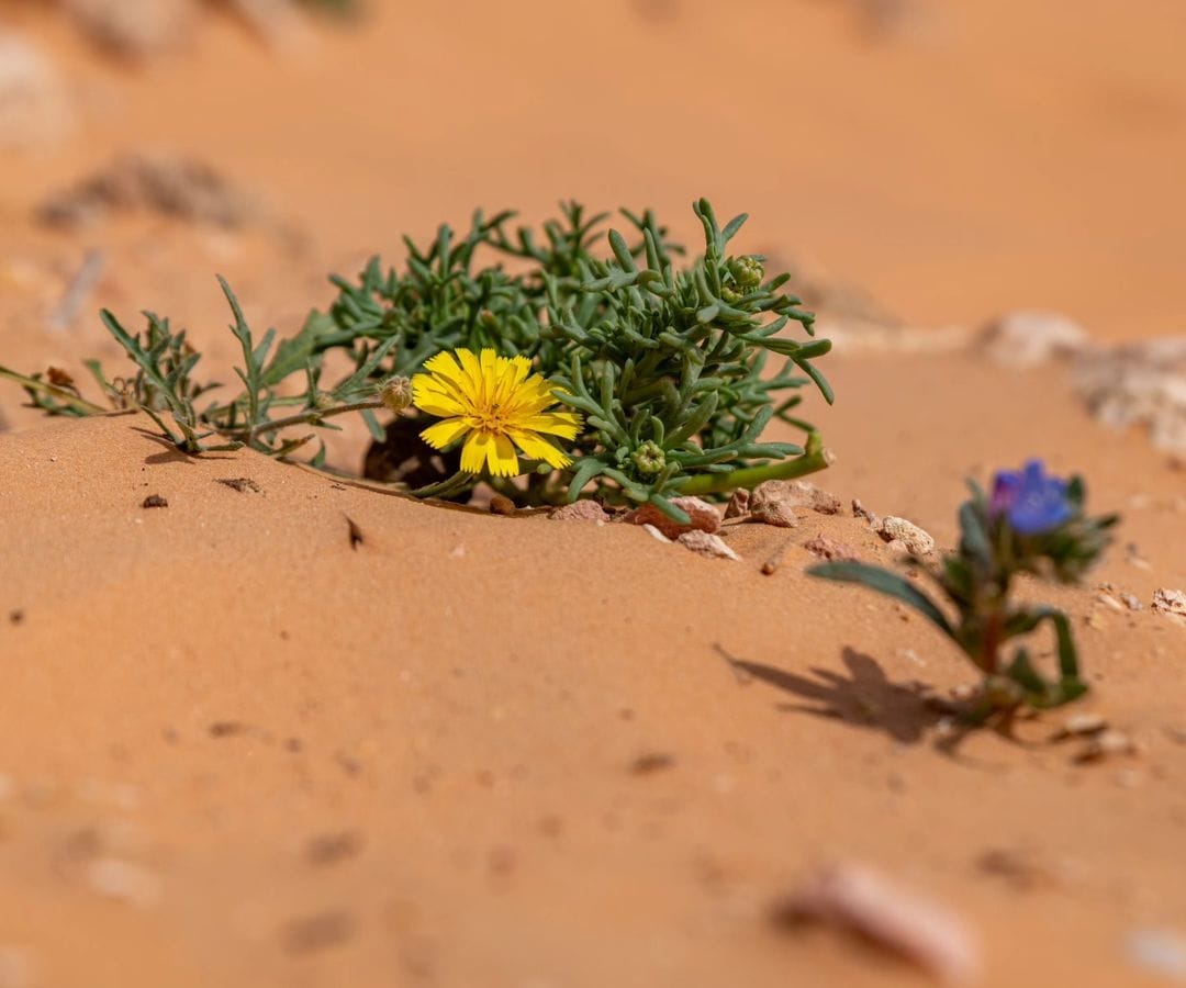 Amid that harsh Saharan realm, a violet flower courts its shining neighbor, unraveled and immortalized by Sud Aventures Tunisie explorers.. Keep amazed!