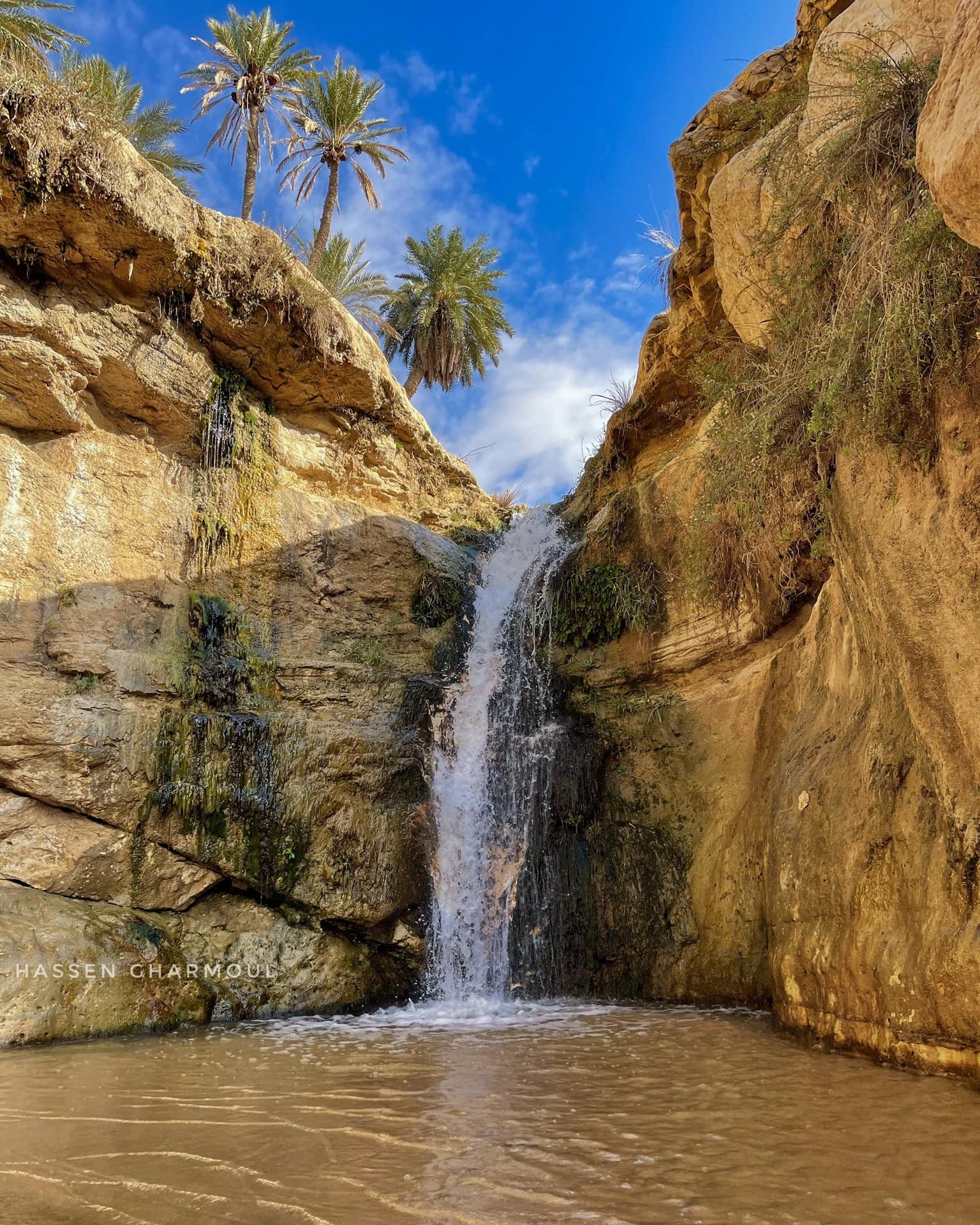 Bouncing back to the deep south.. Jumping into this alluring desert basin, fed by an enduring cascade, watched by these lively palm trees.. portrayed by Hassen Gharmoul in Tunisia’s Chebika