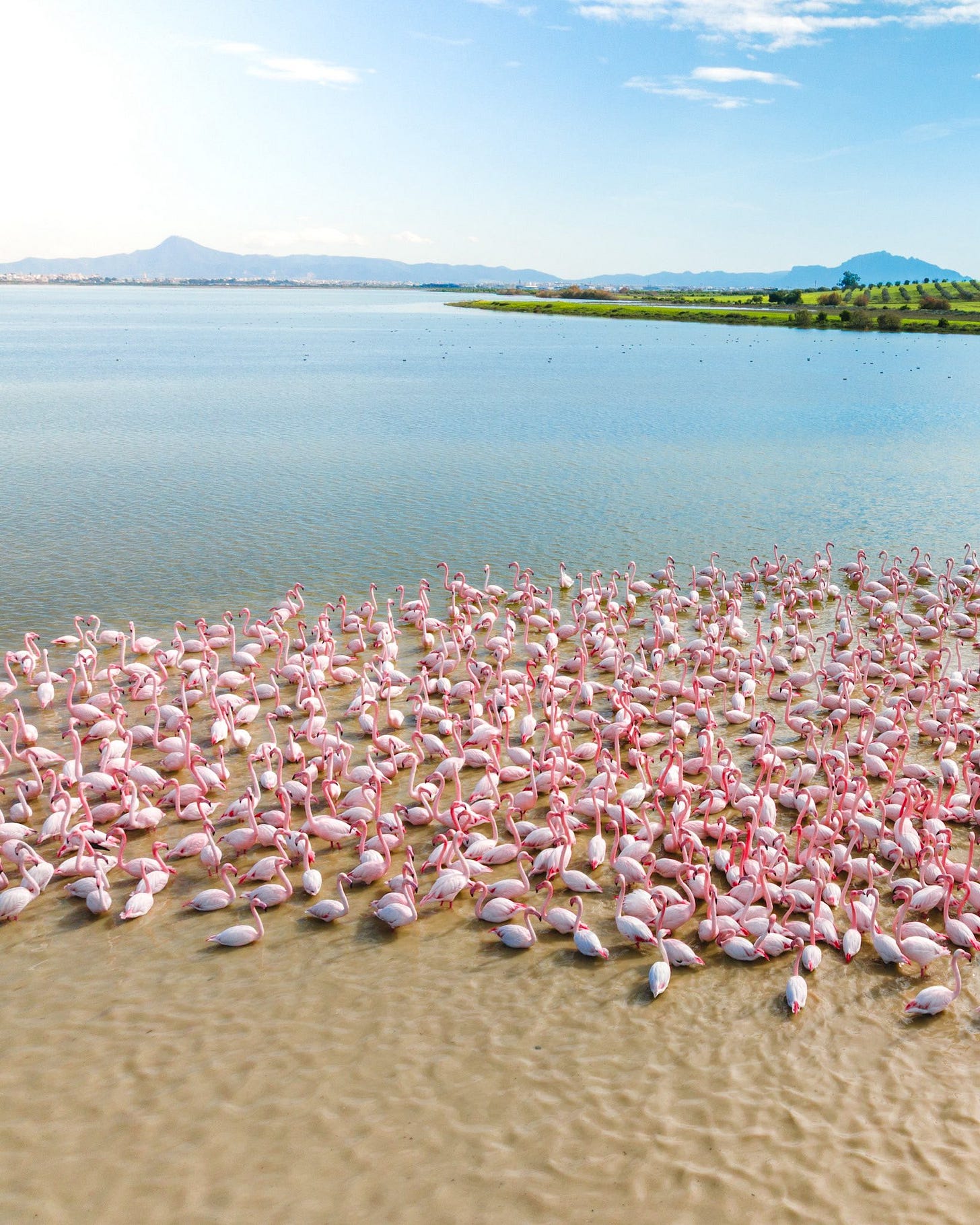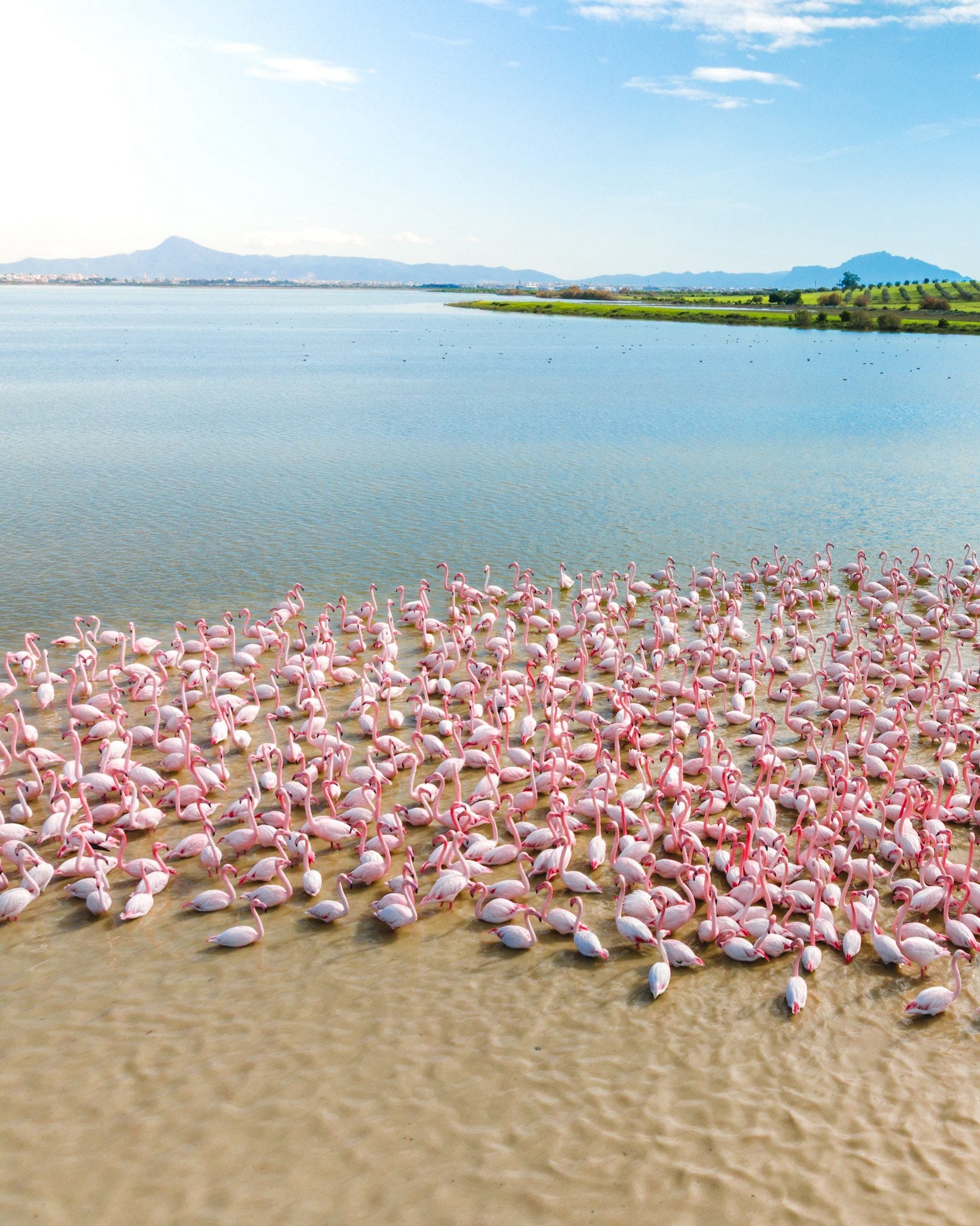 Next stop is: Sijoumi lagoon, a few miles away from bustling Tunis.. Here, migrating flamingos take a break and a refreshing bath.. left in peace and pictured in this ethereal aerial by the drone of Hassen Gharmoul