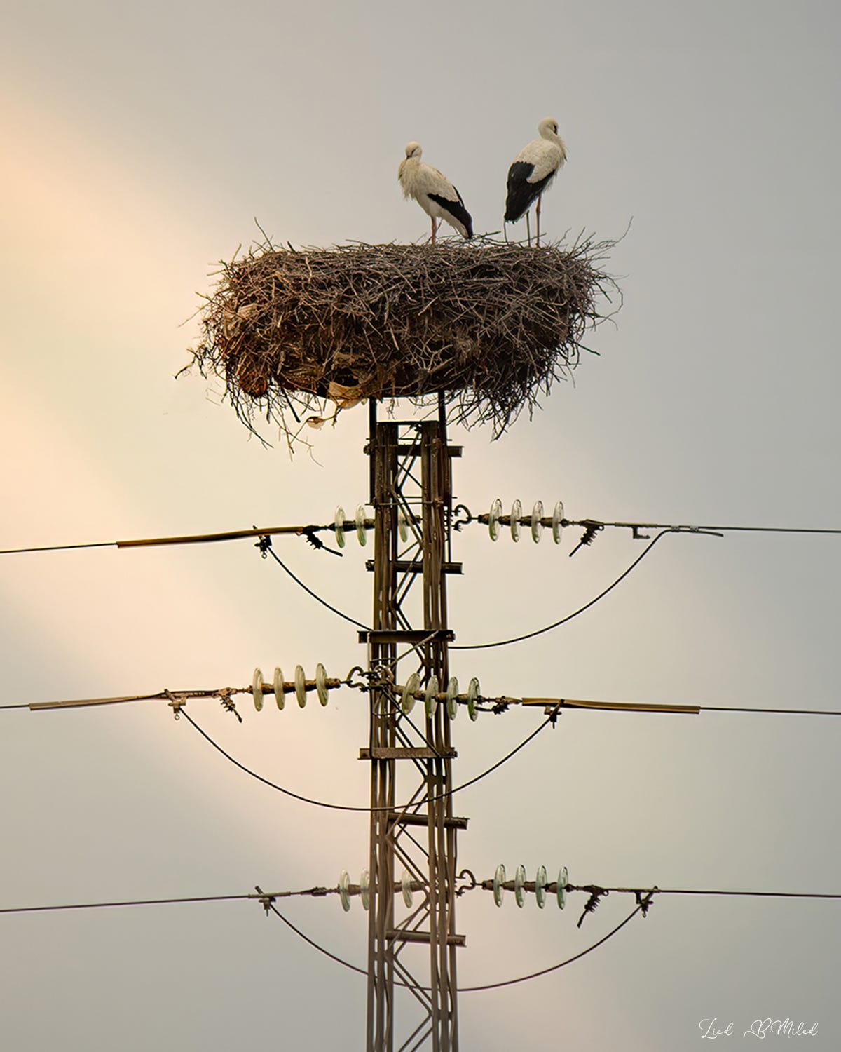 Wildlife finds refuge atop the power poles transformed into fluffy control towers.. His Majesty “Haj Kacem” - The Stork - watching his fellow humans traverse Tunisia’s northwestern parkways.. Photo credit: Zyed Ben Miled
