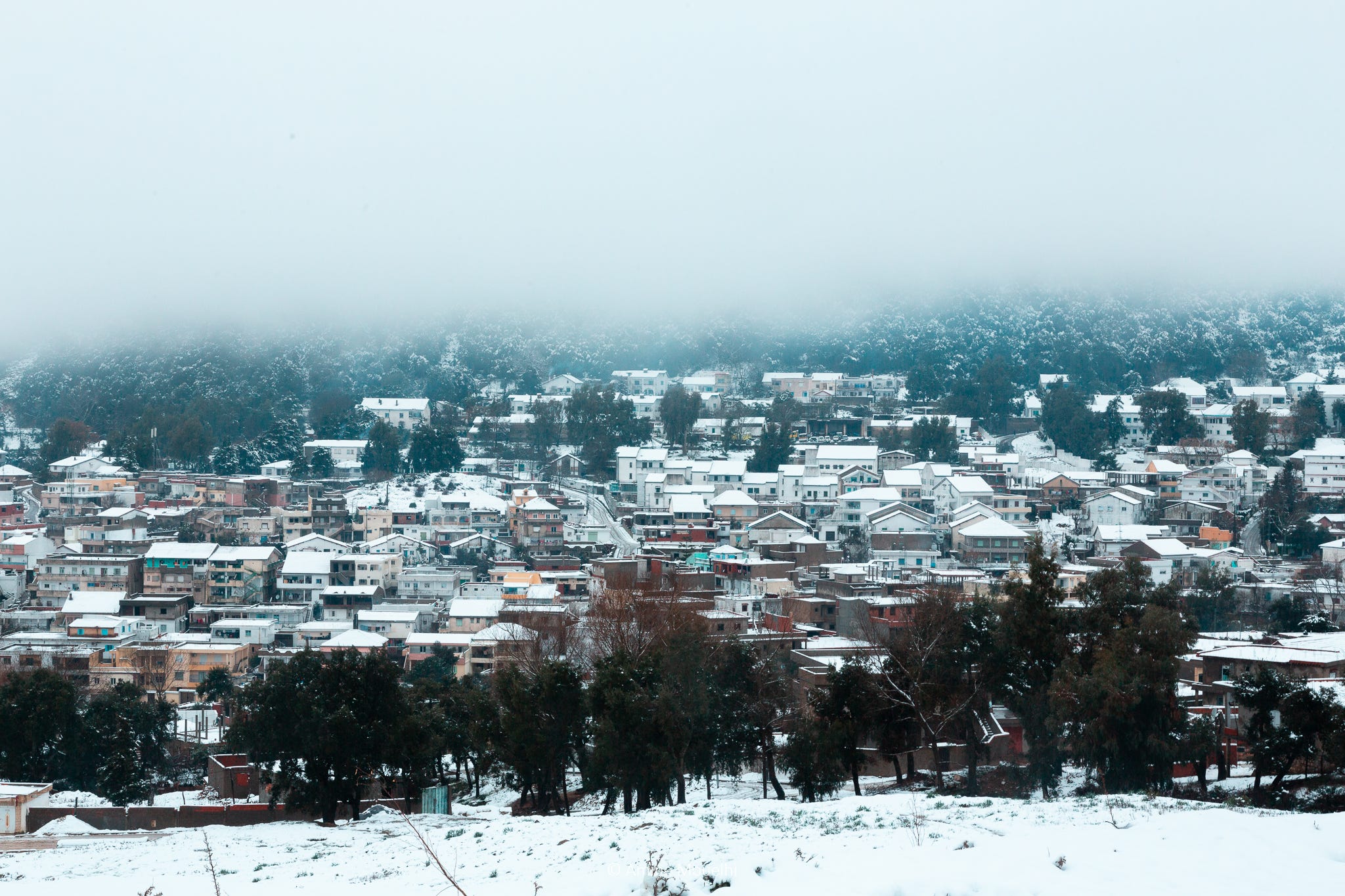 To the town next door: Ain Drahem.. Blanketed in snow, wrapped in mist, and hugged by wood.. Hiding atop Tunisia’s Atlas world, lovingly captured by Amine Mouelhi